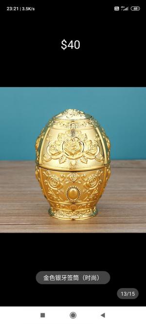 Ca.14金色鋼制牙簽盒特價$30