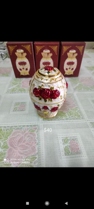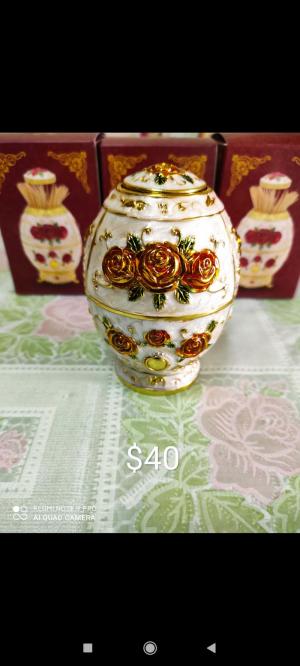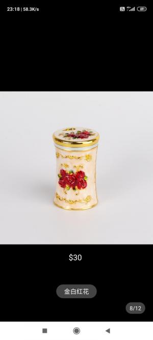 Ca.08人造讖維制金白紅花牙簽筒特價$20