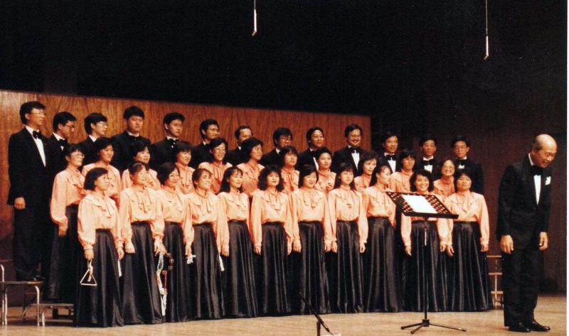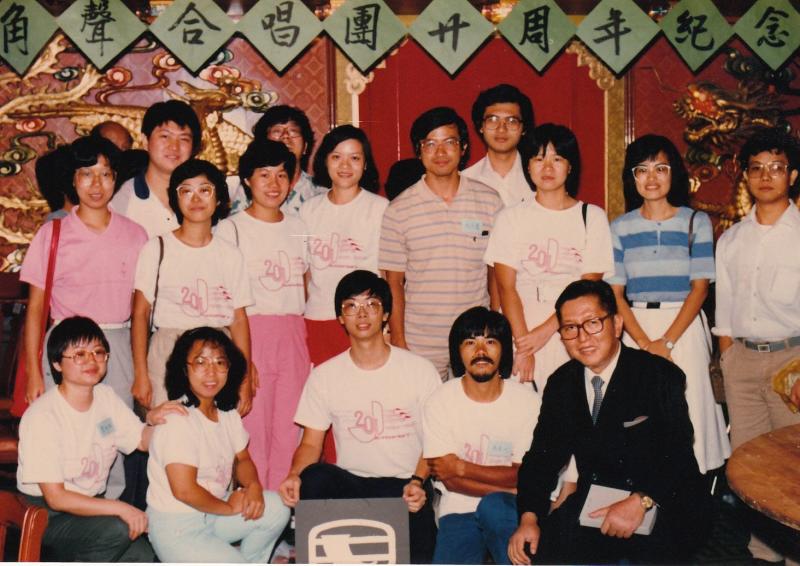 9/15 假香港大會堂音樂廳主辦第廿一輯 [十週年紀念演唱會].由林聲翕作曲韋翰章墳詞之[角聲合唱團團歌]首演