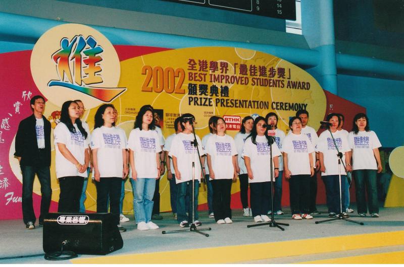 10/14 應邀參加於九龍公園室內運動場舉行的2002年全港學界[最佳進步獎]頒獎典禮中獻唱